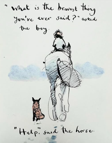 Sometimes we think bravery means big, dramatic acts. I love the beautiful words and illustration by Charles Mackesy as they reminds us that often the bravest thing we can do is ask for 'help'. It takes courage to admit we are struggling. Remember asking for help doesn't make us weak, it makes us human. So if you are carrying something that feels heavy right now, know you you don't have to carry it alone.